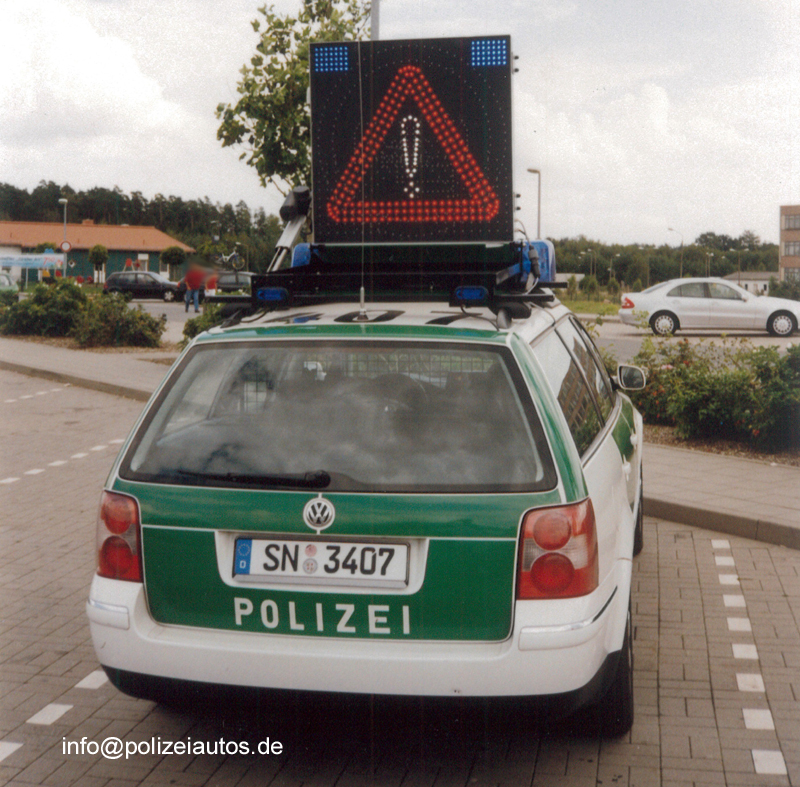 | Beschreibung: | Funkstreifenwagen der Autobahnpolizei Mecklenburg-Vorpommern im Jahr 2004. Dieses Fahrzeug ist zu Testzwecken mit einer klappbaren LED-Wechselverkehrszeichenanlage ausgerüstet. Fotos: Ingo Hoffmann |