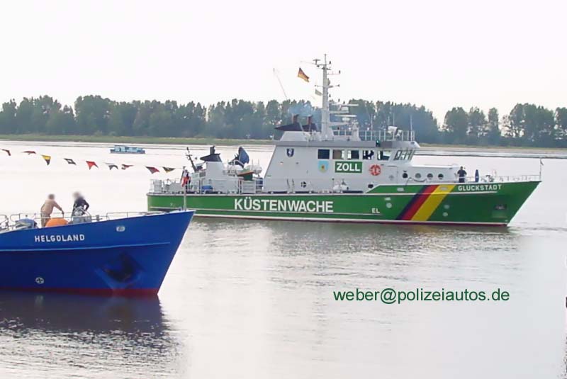 | Beschreibung: | Zollkreuzer Glückstadt mit Tochterboot Fortuna auf der Elbe im Bereich der Anlegestelle in Wedel (Willkomm-Höft -Schulauer Fährhaus-) Das Boot ist bereits das zweite Boot der Zollverwaltung mit diesem Namen (siehe auch HIER). Technische Daten Baujahr: 1991 Bauwerft: Fr. Fassmer GmbH & Co. KG, Berne/Motzen, Deutschland Länge: 28,62 m Breite: 6,20 m Tiefgang: 1,65 m Maschine/Leistung: 3 x MWM TBD 604 BV 8 mit 825 KW bei 1.745 U/min Geschwindigkeit: 26 kn Besatzung: 6 Personen. "Diese" Glückstadt wurde 2011 ausgemustert und verkauft. Am Rand ist noch das schlesw. holsteinische Polizeiboot Helgoland zu erahnen. |