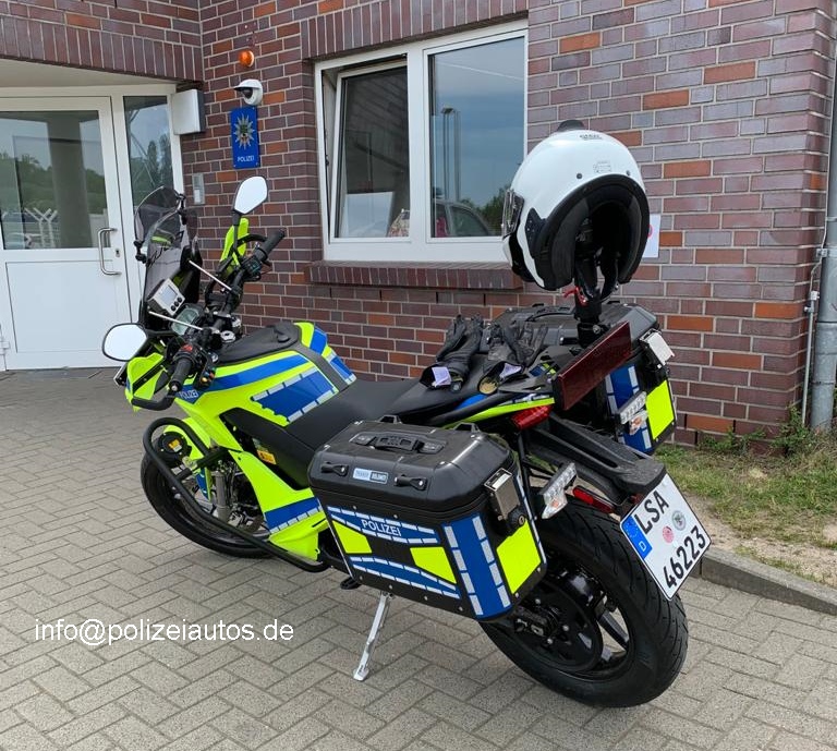 | Beschreibung: | Elektromotorrad -Zero Motorcycles- der Polizei Sachsen-Anhalt, seit Mai 2021. Fotos: sojus 31 Technische Daten: Hersteller: Zero Motorcycles Modell: ZERO DS ZF 14.4 ABS Leistung: 45 kW (60 PS) Drehmoment: 110 Nm Vmax: 158 km/h Reichweite: 250 km (mit Zusatz-Akku 328 km) Akkukapazität: 14,4 kWh Ladedauer: 8 bis 9 Stunden Leergewicht: 187 kg |