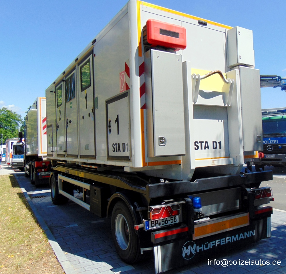 | Beschreibung: | Abrollbehälter "Durchsuchung" STA D1 und Abrollbehälter "Bearbeitung" STA B1 der Bundespolizei in St. Augustin.