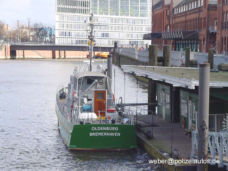 | Beschreibung: | Seit dem 08.09.2005 hat das Zollboot Oldenburg seinen (vermutlich) letzten Ankerplatz erreicht: In der Hamburger Speicherstadt ist es im Zollkanal als Teil des Deutschen Zollmuseums als Museumsschiff ausgestellt. Technische Daten: Bauwerft: Yacht- und Bootswerft Burmester; Bremen-Burg Baustoff: Aluminium Länge ü.a.: 28,07 m Länge i.d. CWL: 26,74 m Breite: 4,83 m Tiefgang: 1,44 m Bruttoraumgehalt: 78,14 BRT Antrieb: 2 x Diesel MTU - Typ: 8 V 331 TC 81 Dauerleistung: 2 x 815 PS bei 2260 U/m Überleistung: 2 x 900 PS bei 2340 U/m Höchstfahrt: 23,25 kn (43 km/Std.) Unterscheidungssignal: DLVG Indienststellung: Februar 1977 Nautische Ausrüstung: Radar, Kreiselkompass, Echolot, GPS-Navigator, GMDSS-Funkanlage, Funkfernschreiber, Navtex UKW-Seefunk, BOS-Behördenfunk Besatzung: 8 Beamte. |