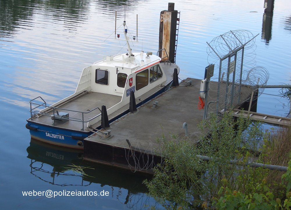 | Beschreibung: | Boot 26 der Wasserschutzpolizei am Anleger vor der Dienststelle in Salzgitter. Technische Daten Bootstyp: Streckenboot Bauart: Außenhaut geschweißt auf Rundspanten Bootskörper und Aufbauten aus Aluminium Baujahr: 1990 Bauwerft: Aluminium Schiffswerft GmbH, Lübeck Länge: 9,20m Breite: 2,40m Tiefgang: 0,90m Verdrängung to: 3,50 Motor: 1 x Wizemann-Marine-Diesel 352 AAS, 123 kw/167 PS bei 2800 UpM Antriebsart: indirekt über ZF-Wendegetriebe BW 40 S Höchstgeschwindigkeit: 28,8kn / 38,5 km/h Kraftstoffvorrat: 214 l Bordspannung: 24 V Einsatzgebiet: Mittellandkanal. Das Boot ist mittlerweile a.D. und wurde am 23.03.2012 für 27700 Euro versteigert, der ehem. Neupreis betrug ca. 110000 DM. Hier ist das Boot noch in blau/grauer Farbgebung zu sehen. Aufnahme aus den 1990er Jahren. |