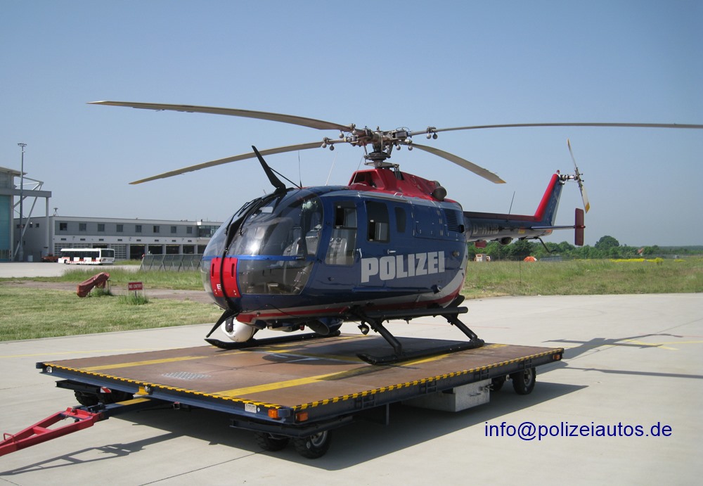Hubschrauber (D-HTHB) der Thüringer Polizei im neuen Farbkleid.