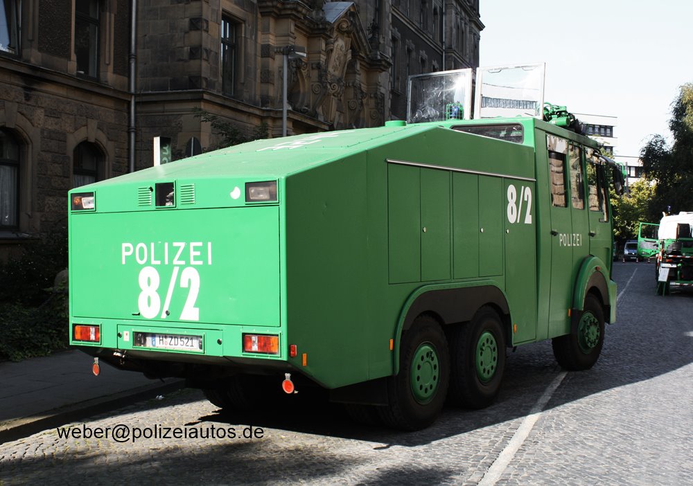 | Beschreibung: | Wasserwerfer 8/2 der niedersächsischen BePo. Ausführung ähnlich DIESEM, jedoch ohne seitliche Abgasabführung nach oben. |