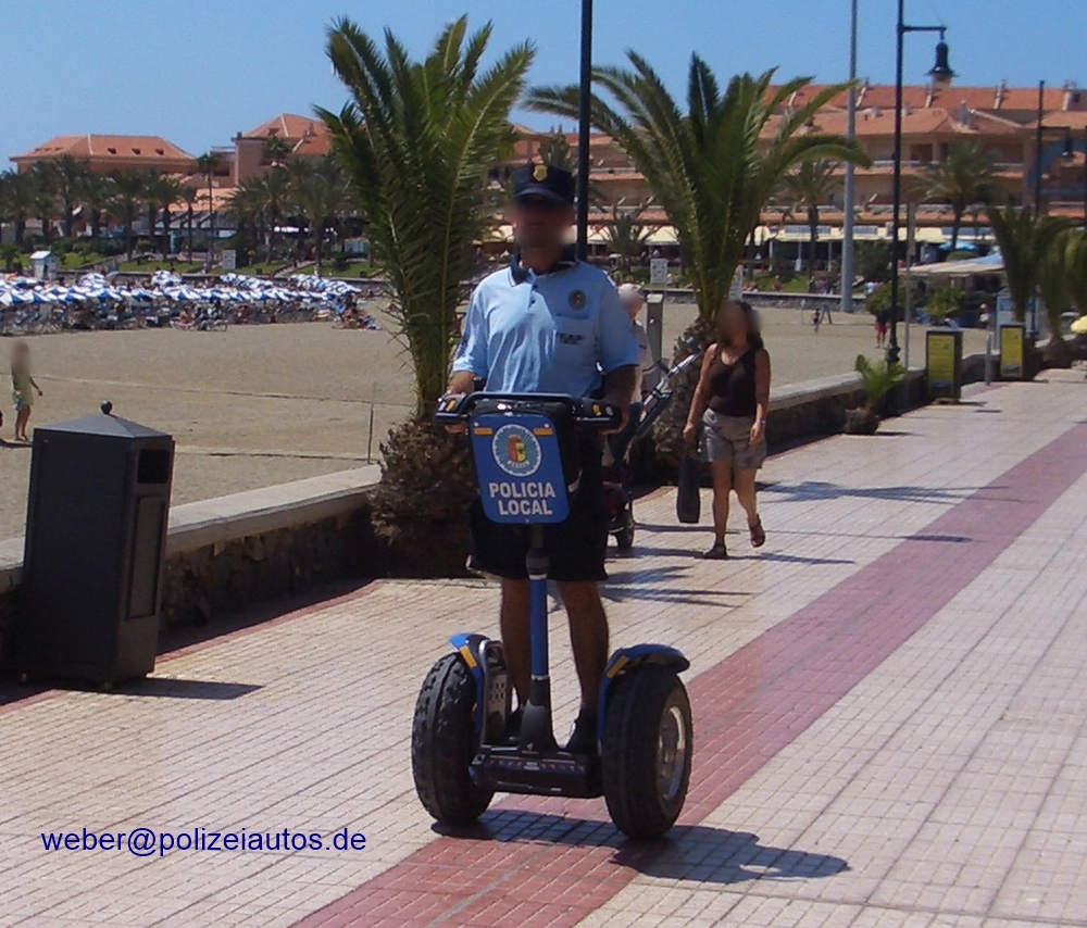 Segway-Doppelstreife der Policia Local, auf einer Strandpromenade, auf Teneriffa.