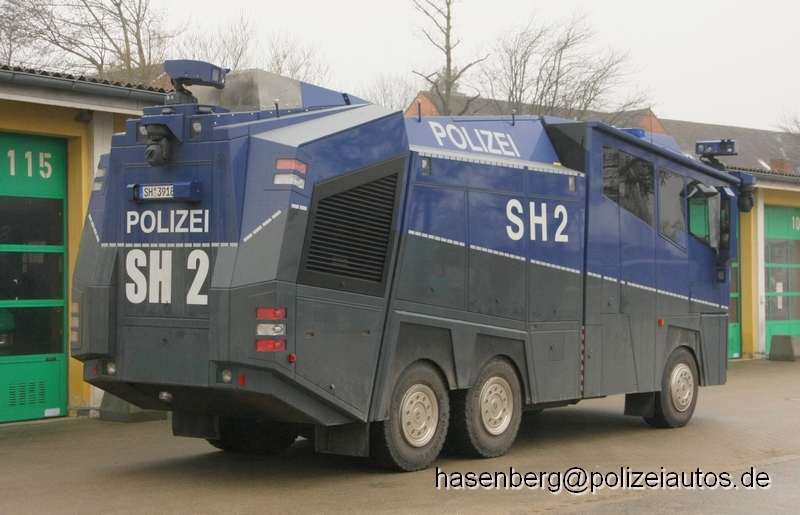 | Beschreibung: | Bundeseinheitlicher Wasserwerfer 10000 (WaWe 10) der Bereitschaftspolizei Schleswig-Holstein. |