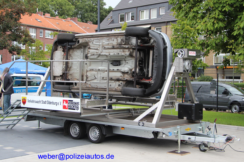 | Beschreibung: | Von der Verkehrswacht der Stadt Oldenburg und der Polizei gemeinsam betriebener Überschlagsimulator, hier am 01.09.2013 in Aktion, auf dem AKTIONS- und PRÄVENTIONSTAG der PD Oldenburg, ausgerichtet auf dem Gelände der Polizeiinspektion Wilhelmshaven/Friesland. Als Fahrzeug dient ein ausrangierter Fustw. VW Touran. |