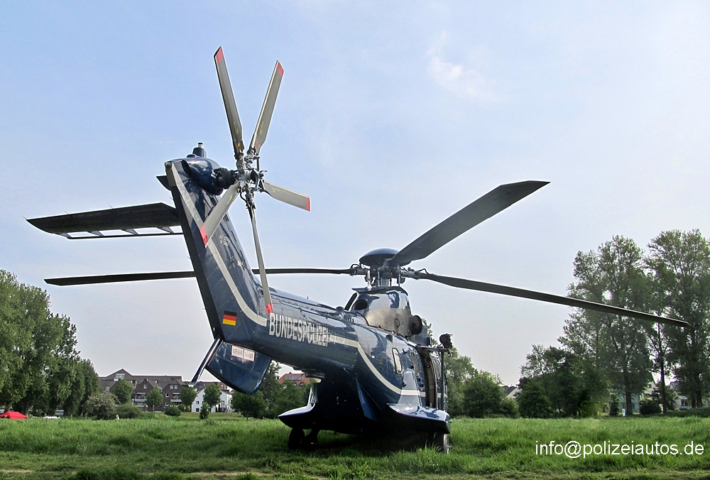 | Beschreibung: | Mittlerer Transporthubschrauber der Bundespolizei-Fliegerstaffel. Technische Daten: Maximales Abfluggewicht: 8600 kg Maximale Zuladung: 3200 kg Reisegeschwindigkeit: 140 kt (260 km/h) Maximale Flugdauer: 4:10 h (bei Reisegeschwindigkeit) Maximale Tankmenge: 1894 kg Dauerleistung: 2 x 1588 PS Startleistung: 2 x 1877 PS Sitzplätze: max. 21 Fotos 3+4: Manfred Wilewka |