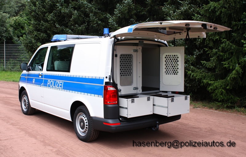 In dem Fahrzeug können im hinteren Bereich zwei Diensthunde und das dazu gehörige Equipment mit geführt werden. Das Fahrgestell verfügt über einen Allradantrieb sowie eine Anhängekupplung. Die hintere Scheibe ist zum Schutze der Hunde verdunkelt worden. Ausgebaut wurde das Fahrzeug durch die Volkswagen Nutzfahrzeuge AG |