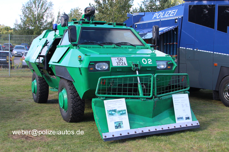 Sonderwagen 4 der Bereitschaftspolizei Mecklenburg-Vorpommern mit Räumschild.