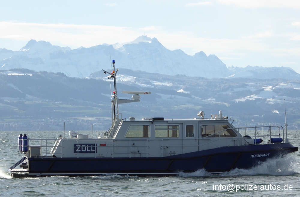 | Beschreibung: | Zollboot Hochwart. Bei der neuen „Hochwart“ handelt es sich um die ehemalige Kuhwerder, welche in Hamburg komplett überholt wurde und nun seit Dezember 2017 im Bodensee ihre weitere Verwendung findet. Das Zollboot "Hochwart" wurde 1997 als Zollboot "Mescherin" für die damalige Oberfinanzdirektion Cottbus in Dienst gestellt. Sie wurde im Juli 2005 durch die Oberfinanzdirektion Hamburg in "Kuhwerder" umgetauft und wurde bis 2016 im Hamburger Hafen sowie auf der Ober- und Unterelbe eingesetzt. 2016 wurde das Zollboot "Kuhwerder" in Hamburg außer Dienst gestellt und zum Verkauf angeboten. Es wurde dann aber aufgrund eines Motorschadens an einem anderen Zollboot umgebaut, mit einer neuen Maschine ausgestattet und 2017 unter dem Namen "Hochwart" am Bodensee wieder in Dienst gestellt. Technische Daten Bauwerft: Ernst Menzer, Hamburg-Bergedorf Schiffskörper: Aluminium Länge über alles: 15,30 m Breite: 4,67 m Tiefgang: 0,55 m Verdrängung: ca. 15 t Geschwindigkeit: 22 kn = 41 km/h Antriebsmotoren: 2x Yanmar 6LY3-STA je ca. 300 kW, 6 Zylinder Antrieb: 2x Hamilton Jetantrieb Typ 16/138 |