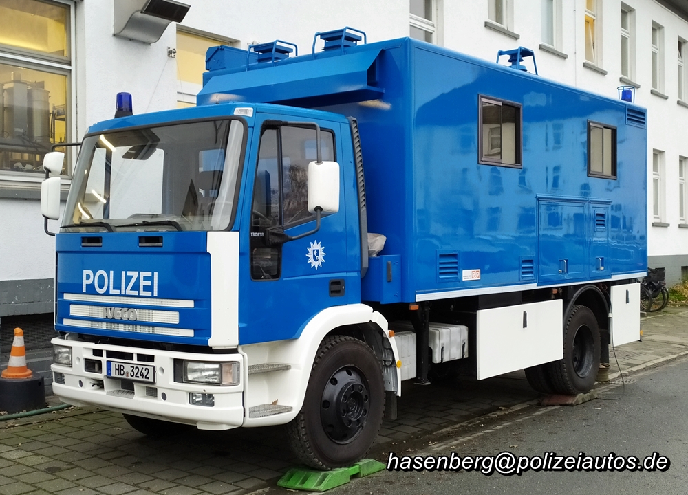 | Beschreibung: | Bundeseinheitlicher Küchenkraftwagen (KüKw) der BePo Bremen. Dieses schon länger genutzte Fahrzeug wurde nach einer Grundüberholung neu lackiert. Es wurde die Farbe "Verkehrsblau" analog zu den Streifenfahrzeugen gewählt, um ein einheitliches Erscheinungsbild zu erhalten. |