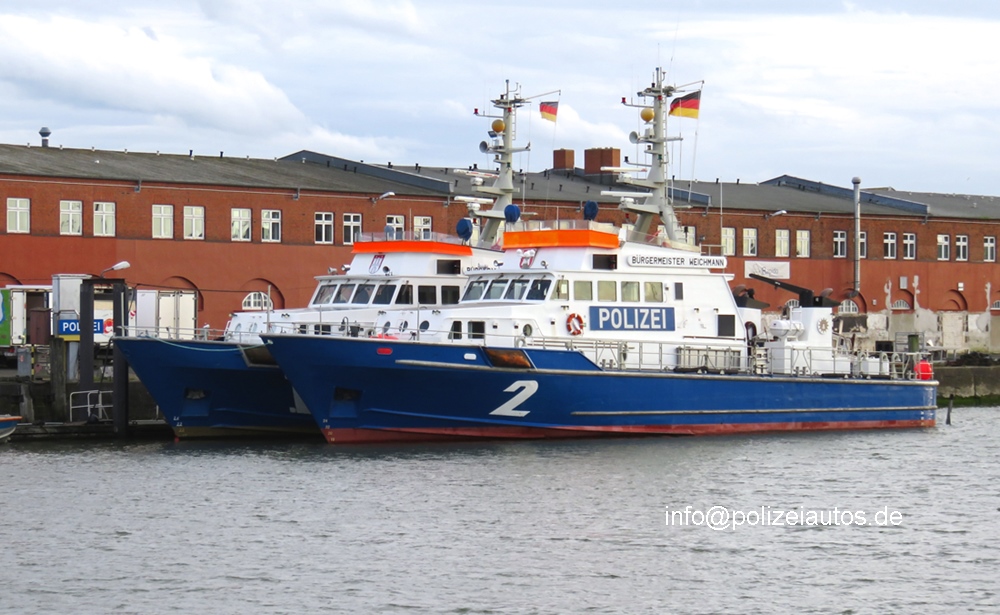 Die Küstenstreifenboote WS 1 "Bürgermeister Brauer" und WS 2 "Bürgermeister Weichmann" im Hafen von Cuxhaven.