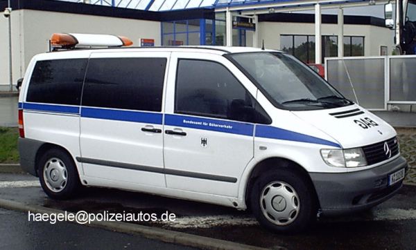 Einsatzfahrzeug des BAG für Kontrollen des Schwerverkehrs. (gelbe Rundumleuchten)