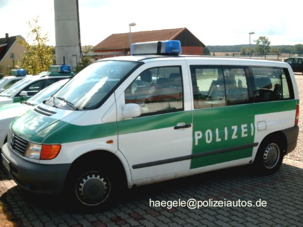 Funkstreifenwagen der Autobahnpolizei Mecklenburg-Vorpommern mit zusätzlichen Warnleuchten hinter der Heckscheibe.