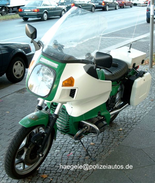 Kraftrad der Bereitschaftspolizei, das als Besonderheit weder über einen POLIZEI-Schriftzug noch über eine Sondersignalanlage verfügt.