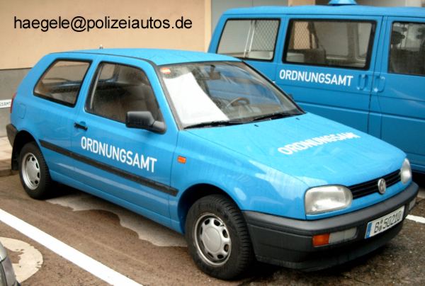 Ehemaliges Polizeifahrzeug in verkehrsblau des Bezirksamtes Lichtenberg von Berlin (