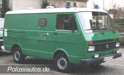 Gefangenentransportwagen mit zwei Einzelblaulichtern vorne und kleinem Fenster in der Schiebetür.