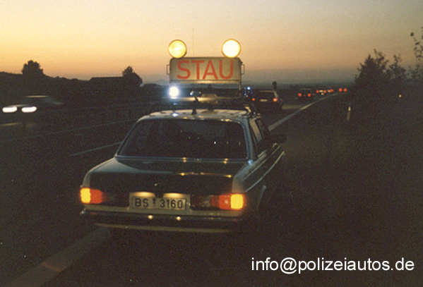 | Beschreibung: | Funkstreifenwagen der Autobahnpolizei (Mercedes-Benz W 123) bei der STAU-Absicherung. Für die damalige Zeit war der Fustw. schon mit einer fortschrittlichen, beleuchteten, Klapptafel ausgestattet. Aufnahme Ende der 80`er Jahre. Foto: Detlef Böntgen |