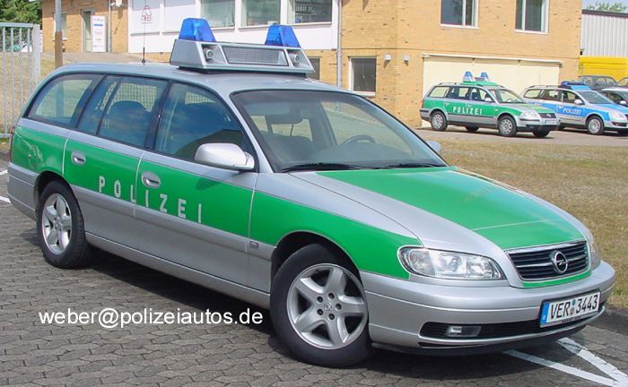 Funkstreifenwagen ohne Polizeibeschriftung auf der Motorhaube und mit kleinem Polizeischriftzug auf den Seitentüren.