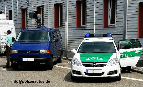 Ein interessantes Duo des Grenzaufsichtsdienstes im Bereich des Hauptzollamts Singen: Ein in neutraler Farbe gehaltener VW T4 Transporter der Wärmebild-GASt mit dem neuen Opel Vectra Caravan in bekannter Zoll-Optik. Er ersetzt den bislang verwendeten Opel Astra Caravan bzw. VW Golf Variant. Nähere Infos folgen, wenn neue Fotos vorliegen.