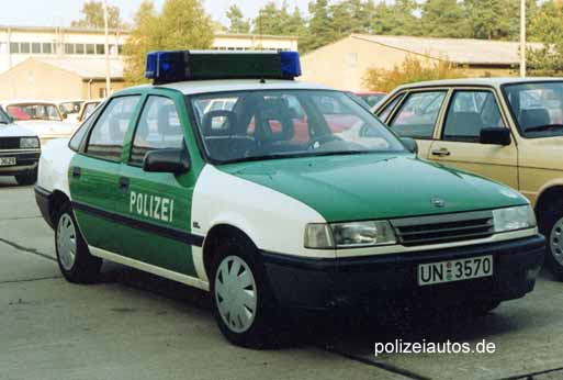 Standard-Funkstreifenwagen in NRW in den 1990er Jahren. Abgelöst wurde dieser Fahrzeugtyp vom Opel Vectra B.