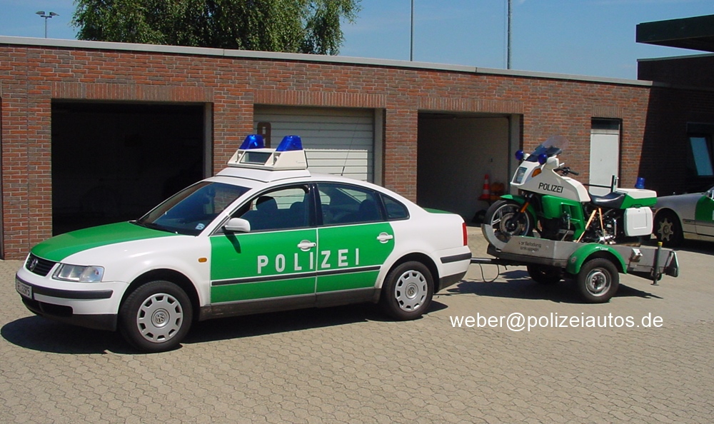 | Beschreibung: | Funkstreifenwagen der Polizei Niedersachsen mit angehängtem Krad-Transportanhänger. Zum Transport in die Werkstatt oder nach Sondereinsätzen werden Kräder z. Teil auf Anhängern verladen. |