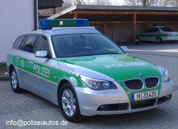 BMW 525d Touring als Funkstreifenwagen der Autobahnpolizei mit Signalanlage Hella RTK 6 LED.