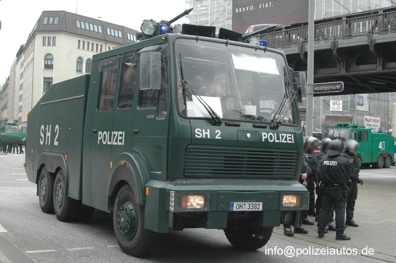 | Beschreibung: | Ein vermutlich aus BGS/BP-Beständen übernommener Wasserwerfer versieht Dienst in Reihen der BePo Schleswig-Holsteins. Foto: Matthias Röhe. Mittlerweile (2009) präsentiert er sich in silber/blau. |