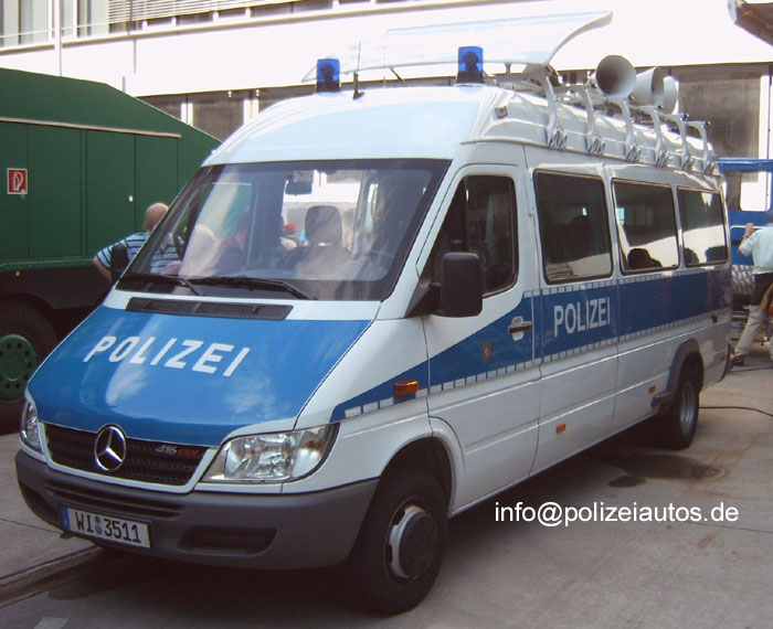 Bundeseinheitlicher Lautsprecherkraftwagen der hess. Bereitschaftspolizei ohne Frontblitzer.