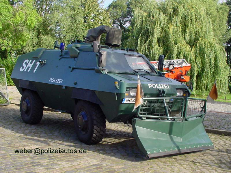 | Beschreibung: | Sonderwagen SW 4 SH 1 der Bereitschaftspolizei Schleswig-Holstein mit Räumschild. Es handelt sich um ein ehemaliges Bundespolizeifahrzeug. Hier ist das Fahrzeug mit Lichtaufsatz zu sehen. |