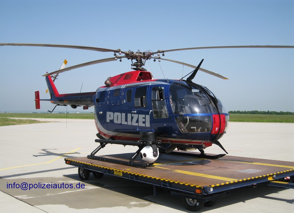 Hubschrauber (D-HTHB) der Thüringer Polizei im neuen Farbkleid.