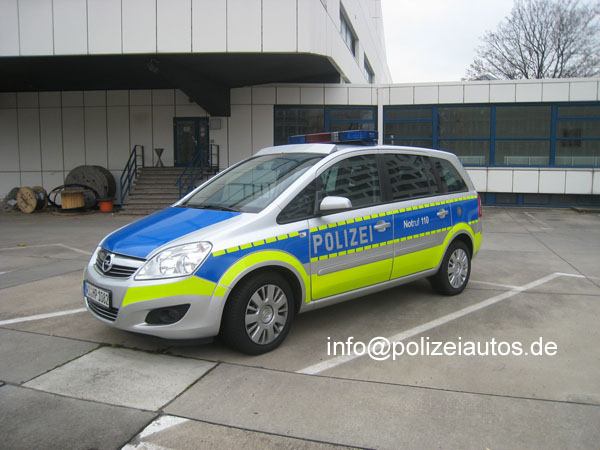 Funkstreifenwagen der Polizei Hessen mit probeweiser Warnbeklebung.