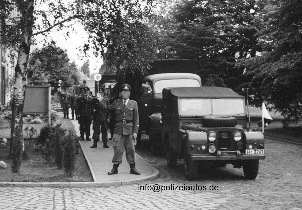 | Beschreibung: | Die Hundertschaft ist zum Abmarsch bereit. Im Vordergrund ist das Führungsfahrzeug zu sehen. Der genaue Aufnahmezeitpunkt ist leider nicht bekannt, müßte sich aber so um 1960 herum bewegen. |