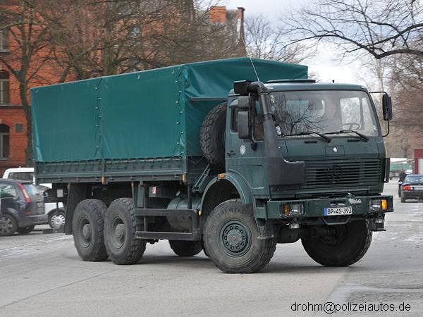 schwerer geländegängiger Lastkraftwagen mit BGS-Stern (Aufnahme von 2010) auf den Türen.