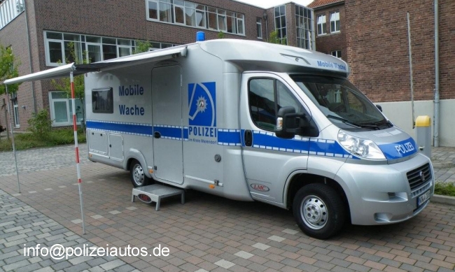 | Beschreibung: | Mobile Wache der Polizei im Kreis Warendorf. Aufgebaut wurde das Fahrzeug durch die Fa. LMC auf einem Fiat Ducato-Fahrgestell. Die vormals grüne Bauchbinde wurde nunmehr durch eine blaue Version ersetzt. |