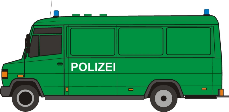 Fahrzeug für den Transport von Personen, die sich im polizeilichen Gewahrsam befinden. Bitte beachten Sie die Hinweise in der