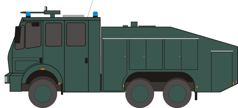 Wasserwerfer mit einem Tankvolumen von 9000 Litern. Bitte beachten Sie die Hinweise in der