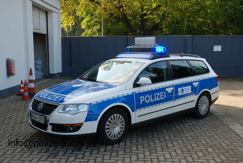 Beim Verkehrsdienst in Gelsenkirchen ist der weiß-blaue Passat eingesetzt (Einzelstück, zuvor Probefahrzeug bei der