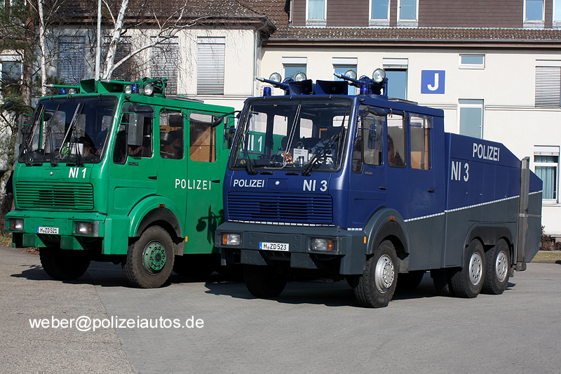 | Beschreibung: | Baugleich und im Äußeren doch so unterschiedlich: Wasserwerfer der niedersächsischen Bereitschaftspolizei |
