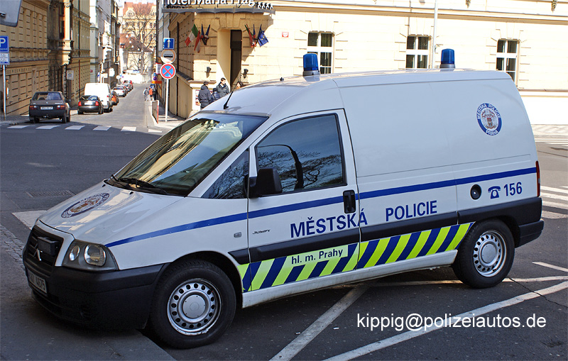 Fahrzeug der Stadtpolizei Prag, hier mit blauen Rundumleuchten
