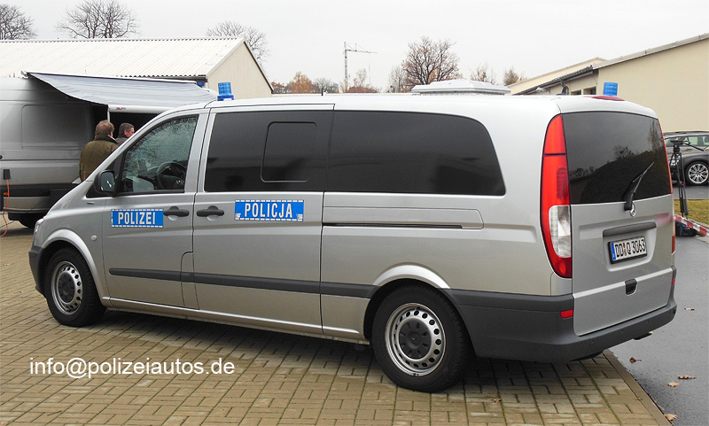 | Beschreibung: | Befehlskraftwagen des SEK Sachsen, finanziert über das EU-Projekt 'Ziel 3' zur Zusammenarbeit mit der polnischen Polizei (siehe Magnetschilder in zwei Sprachen). Die Aufnahmen entstanden bei der offiziellen Fahrzeugübergabe. - Fotos und Infos: Thorsten Schiffer |