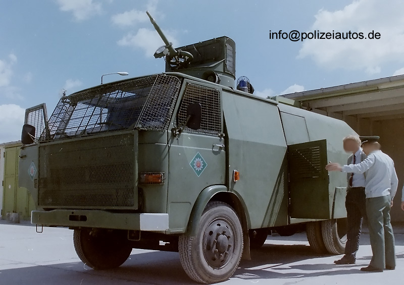 | Beschreibung: | Wasserwerfer der VP-Bereitschaften. Gegenüber diesem Wawe ist das Fahrzeug hier u.a. mit Schutzgittern vor den Fenstern und dem Kühlergrill ausgerüstet. |
