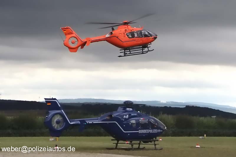 | Beschreibung: | Eurocopter EC-135 T2i in der Version als Rettungshubschrauber (RTH) der Luftrettungsstation Kassel, überfliegt bei der Landung eine Maschine gleichen Typs der Bundespolizei-Fliegerstaffel Mitte in Kassel-Fuldatal. |