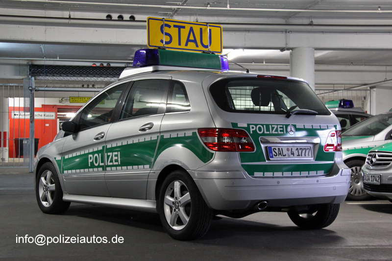 | Beschreibung: | Funkstreifenwagen (MB B-Klasse 200 CDI) der saarländischen Polizei, hier mit einem in den Träger auf der SoSi eingeschobenem STAU-Schild. Fotos: Christopher Benkert |
