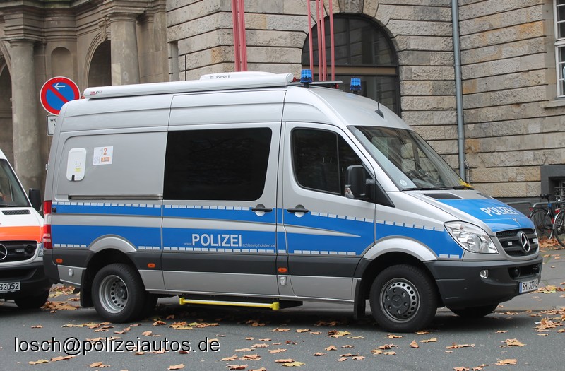 | Beschreibung: | Leichter Befehlskraftwagen aus Landesbeschaffung für die Einzeldiensthundertschaften der Polizei Schleswig-Holstein. Der Ausbau der 3 beschafften Fahrzeuge wurden an die leichten Befehlskraftwagen aus Bundesbeschaffung angelehnt und stammt ebenfalls von Baumeister & Trabandt GmbH. Äußerlich unterschieden sich diese Sprinter gegenüber der Bundesbeschaffung nicht nur aufgrund der silbernen Grundfarbe und dem 5t-Fahrgestell, auch wurden bei den Schleswig-Holsteiner Fahrzeugen eine ausfahrbare Trittstufe unterhalb der Schiebetür sowie eine Markise montiert und eine Vorrichtung zur externen Stromeinspeisung eingebaut. |