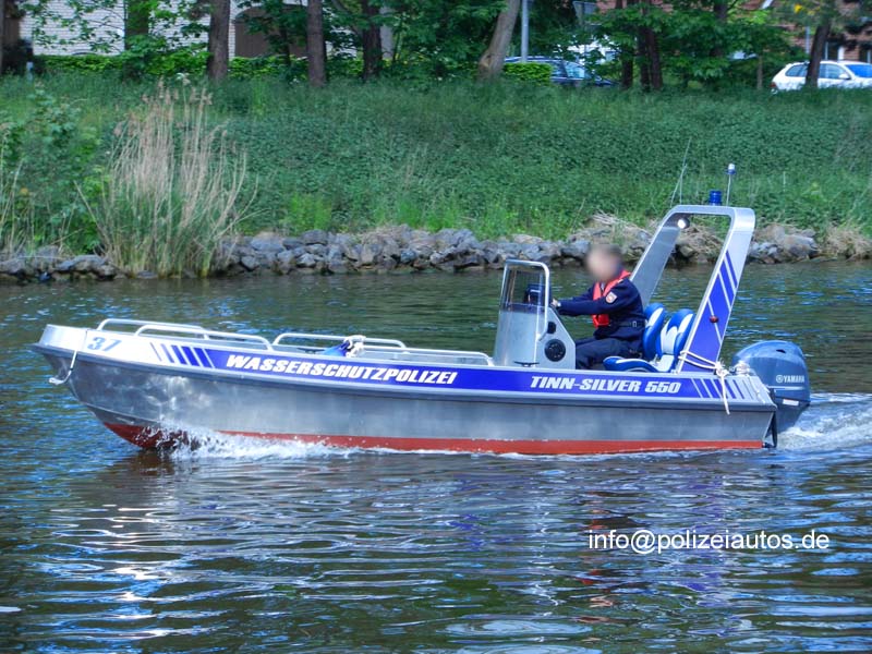 | Beschreibung: | Das neue trailerbare Streifenboot 37 der Wasserschutzpolizei Niedersachsen wird insbesondere für Kontrollen von Sportbooten auf den Flüssen und Kanälen genutzt. Technische Daten Länge: 5,50m Breite: 1,95m Tiefgang: 0,28m Gewicht: 450 kg Antrieb: 1 Außenbordmotor (Yamaha) mit 60 PS Höchstgeschwindigkeit: über 50 km/h |