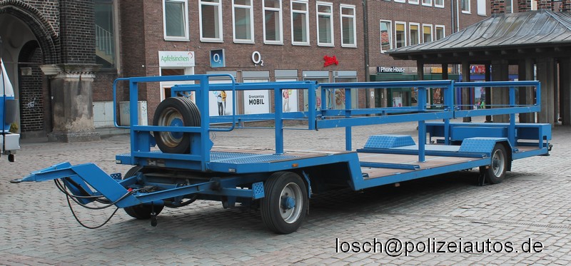 | Beschreibung: | Anhänger der Polizei Mecklenburg-Vorpommern zum Transport von "Hamburger" Gittern. Der ehemals grün lackierte Anhänger wurde inzwischen an das aktuelle Farbschema der Polizei Mecklenburg-Vorpommern angepasst. Im Einsatz wird der Anhänger von einem ebenfalls umlackierten Mercedes-Benz 1017 gezogen. |