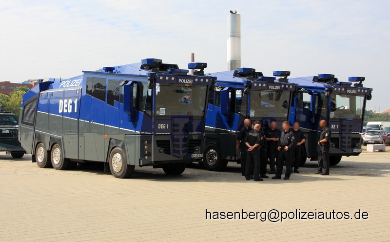 Hier ist eine gemischte Staffel der Bundespolizei von zwei Standorten mit ihren WaWe 10 zusehen. |