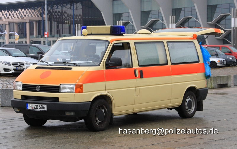 Dieser Krankenwagen wurde entschriftet und seinen Einbauten entledigt. Mittlerweile wird das Fahrzeug zur Versorgung von Einsatzkräften während geschlossenen Einsätzen genutzt. Die Leuchte mit dem roten Kreuz wurde nach hinten verdreht. |